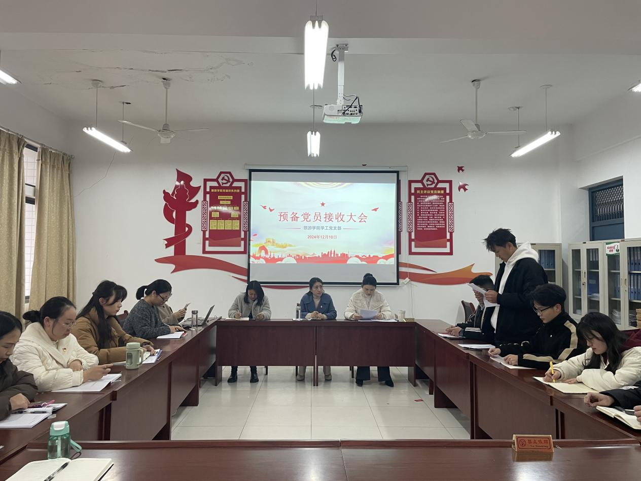 12月10日,tyc7111cc太阳成集团学工党支部在学院党员活动室召开了预备党员接收大会。tyc7111cc太阳成集团党总支书记王璐,学工党支部书记胡玲、党总支纪检委员张娅、学工党支部教师党员、学生预备党员和发展对象参加了大会。会议由学工党支部书记胡玲主持,大会严格按照党组织程序进行,气氛庄重而热烈。