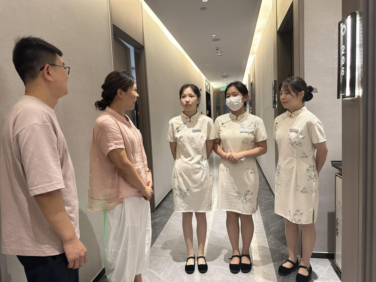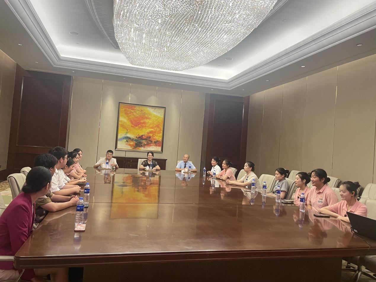 为了进一步加强校企交流,深入了解学生实习情况,确保实习工作扎实有效开展,及时听取实习单位的反馈意见与建议,传达学院对实习生的深切关怀,tyc7111cc太阳成集团党总支书记张丽、副院长尹芳、实习指导老师李明军、缪晶一行于8月3日-6日先后前往苏州花居漫际酒店、恒力大酒店、恒力度假村、同里湖度假村实地督导检查实习工作。