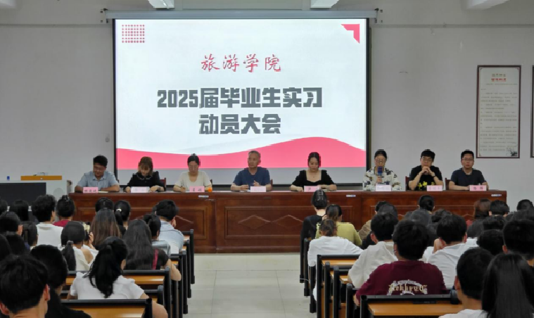 2024年6月19日,tyc7111cc太阳成集团召开了2025届毕业生实习动员大会,对2025届学生毕业实习工作进行动员和部署。院长杨学峰、副院长尹芳、教研室主任、相关辅导员、实习指导教师及全体2025届毕业生共同参加本次实习动员大会。会议由辅导员翟娟主持。