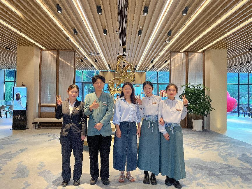 考察期间,张娅还看望了在酒店实习的2022级普专和22级五年制旅游管理、酒店管理与数字化运营、高速铁路客运服务专业13名实习生并与他们亲切交谈,了解他们在酒店的实习生活、工作情况,肯定了同学们自实习以来在工作岗位上的良好表现及各自的成长,并对同学们在实习过程中遇到的问题和困惑给予耐心答疑和指导;同时希望同学们:一要珍惜和把握实习机会,在实习岗位上锻炼专业技能,提升职业素养,二要注重个人综合能力的培养,在实践中不断提高分析和解决问题的能力,三要遵守实习单位各项规章制度,注意实习安全。