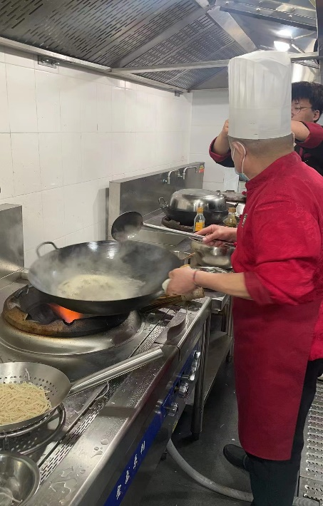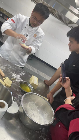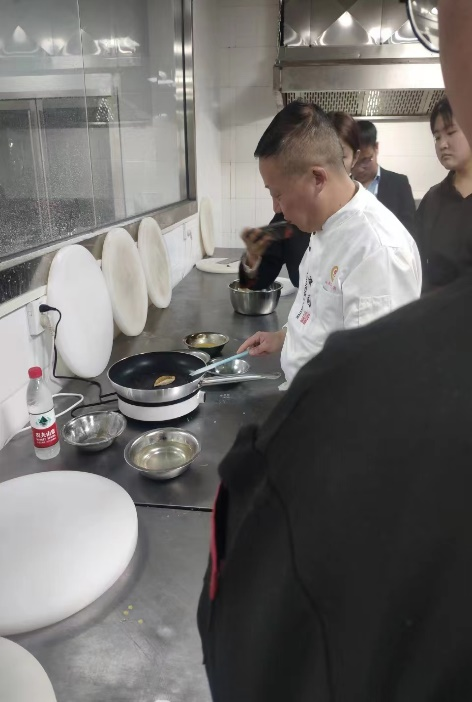 三位烹饪大咖齐聚烹饪实训室,按照省赛菜品制作要求,针对学生备赛过程存在的问题进行指导,并分别对中餐热菜制作、西餐头盘制作、中式面点制作进行了现场示范操作,对菜品制作过程中关键环节进行详细讲解,强调比赛过程中的现场应变能力。
