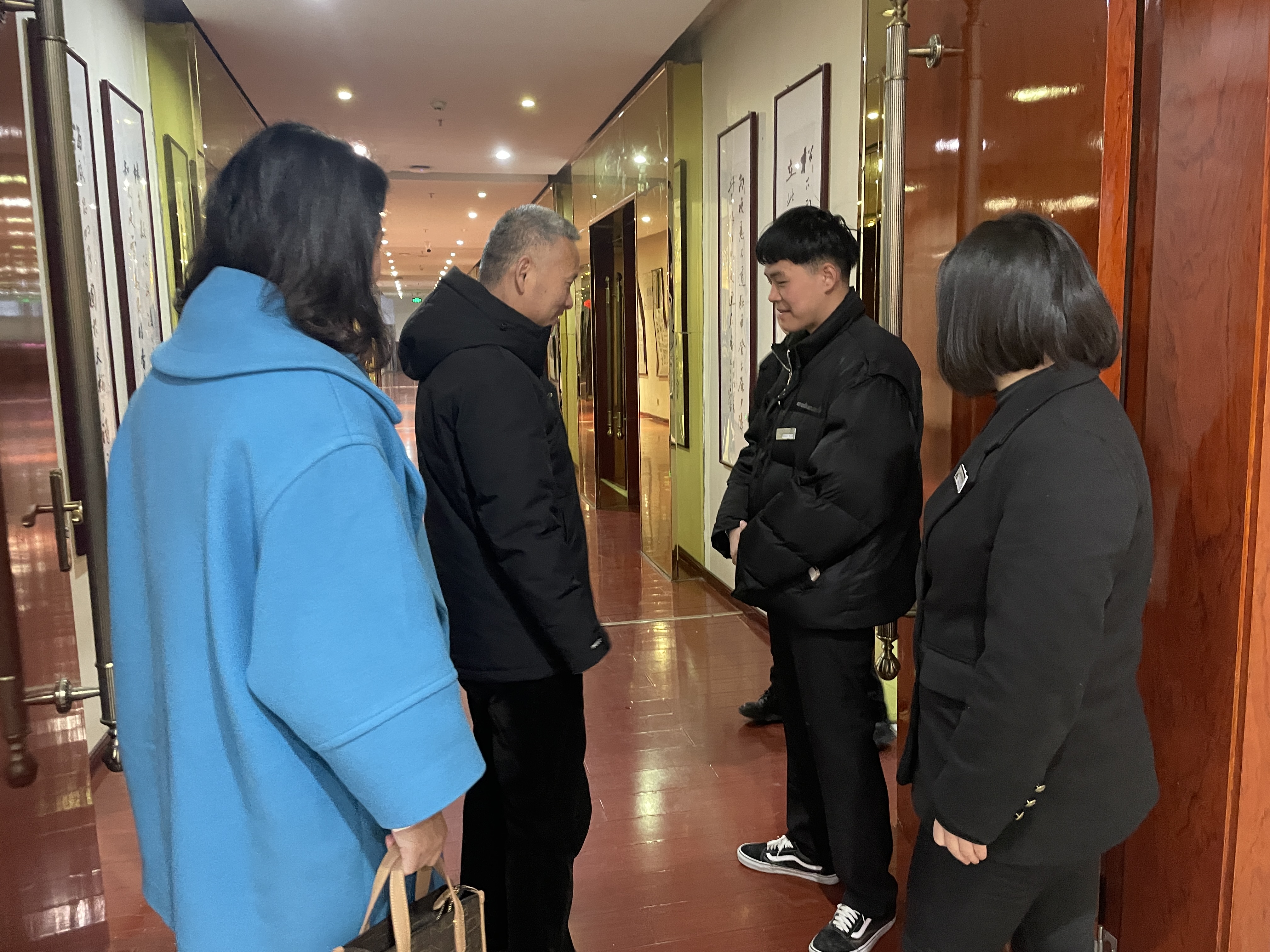 在酒店总经理向长远、运营部总监黄真陪同下,杨学峰一行深入企业前台、餐饮部等看望正在酒店实习的学生,对他们实习、生活情况作全面了解,对学生反映实习过程中存在的突出问题积极与酒店方对接反馈,为学生争取生活好、工作好、心情好的实习条件。随后,双方进行了热情友好的校企合作洽谈。