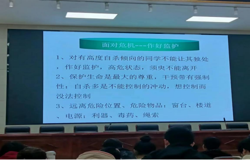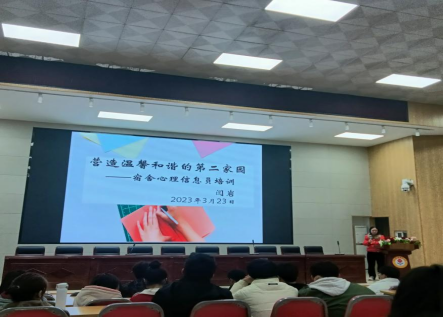 在培训的过程中,闫老师从学习、人际关系、自我认知等方面存在的心理问题及其应对办法进行阐述,让同学们学习到了如何科学有效的保护有心理问题的学生,特别强调宿舍健康信息员的重要作用,指出他们工作重点是以预防为主,日常观察,随时关注同学的心理状态和情绪变化。