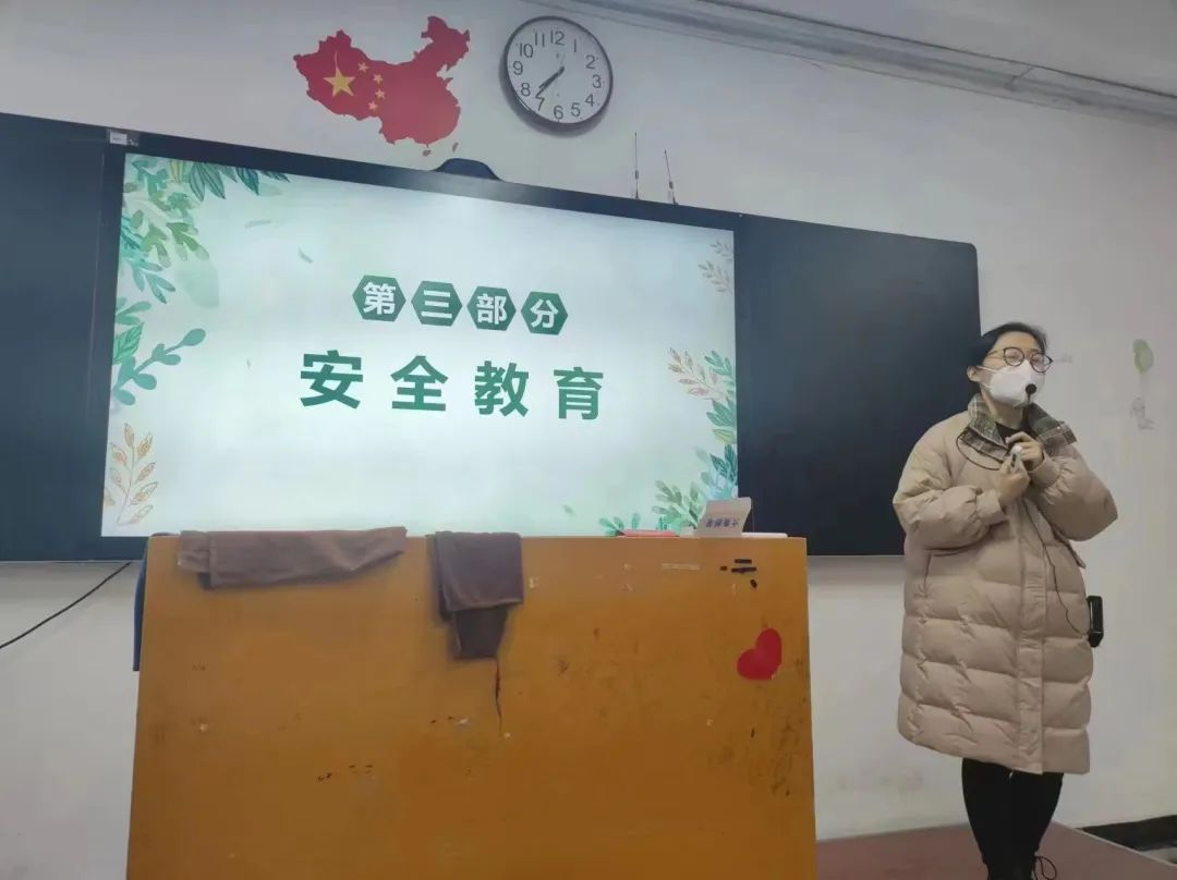 班会期间还进行了“双防”教育、消防安全教育、校园道路安全教育和反诈防骗教育,进一步筑牢了大家的思想政治防线和安全防范意识,为平安校园建设打下坚实的基础。