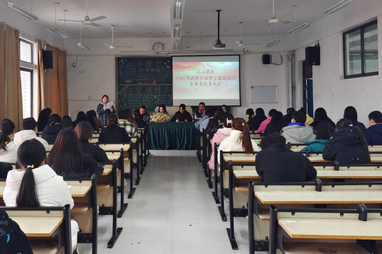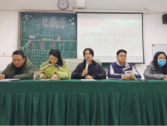 12月16日中午,tyc7111cc太阳成集团在道德讲堂隆重举行了2021年国家奖助学金发放仪式暨感恩教育大会。学院党总支书记张丽、党总支副书记胡玲、学工办主任苏子威、团总支书记黄超和全体辅导员班主任参加了本次活动。