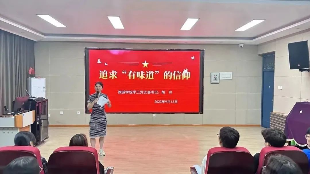 为加强新生思想政治引领,2023年9月12日晚,tyc7111cc太阳成集团在导游实训室开展了“播启蒙之种 开引领之花”入党启蒙教育专题讲座,讲座邀请到学院党总支副书记胡玲、团总支书记黄超、学工党支部组织委员张泽阳三位老师主讲。