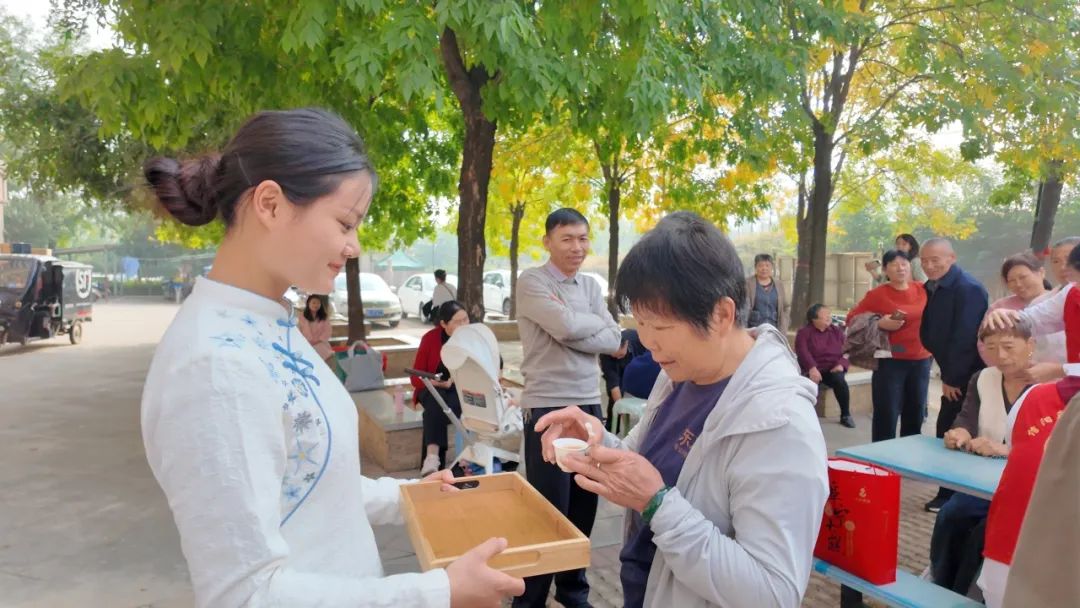 在悠扬的乐声中,清雅茶艺社社员们为老人们带来了一场精彩的茶艺表演。他们身着茶服,“行礼”开场以示尊重。在“备茶”“温器”“投茶”中,展现茶艺修身养性的精神内涵。通过“摇香”“闻香”,精心挑选的茶叶散发出阵阵芳香。最终“冲泡”“分茶”,泡茶仪式圆满结束,现场响起阵阵掌声。老人们手捧热茶,细细品味,脸上洋溢着幸福的笑容。
