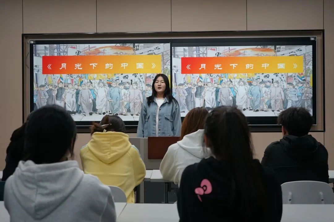 24级旅游管理一班的王琳然以柔和的语调朗诵《月光下的中国》,道出了一名新时代的青年人对祖国无尽的热爱。