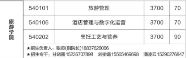 该院在校生1004人,开设旅游管理、酒店管理与数字化运营、烹饪工艺与营养三类服务专业。设有形体训练室、茶艺实训室、模拟导游实训室、旅行社仿真实训室、餐饮实训中心、酒店综合实训室等9个实训室。2016年以来,学院先后获得河南省高职教育示范性实训基地、茶艺师、餐厅服务员(侍酒师)、西式面点师技能等级(三级)认定机构。旅游管理专业被确立为“河南省特色专业”,被中央事务管理局北戴河疗养中心、开元旅业集团、全国人大等确定为定点选人单位,获“养生信阳菜推广教育优秀单位”等荣誉。教师荣获河南省高职院校教学能力大赛二等奖等多项奖励。学生获全国高等职业院校“发明杯”大学生创新创业大赛、省职业技能大赛、省大学生职业生涯规划大赛一二三等奖等多项奖励。