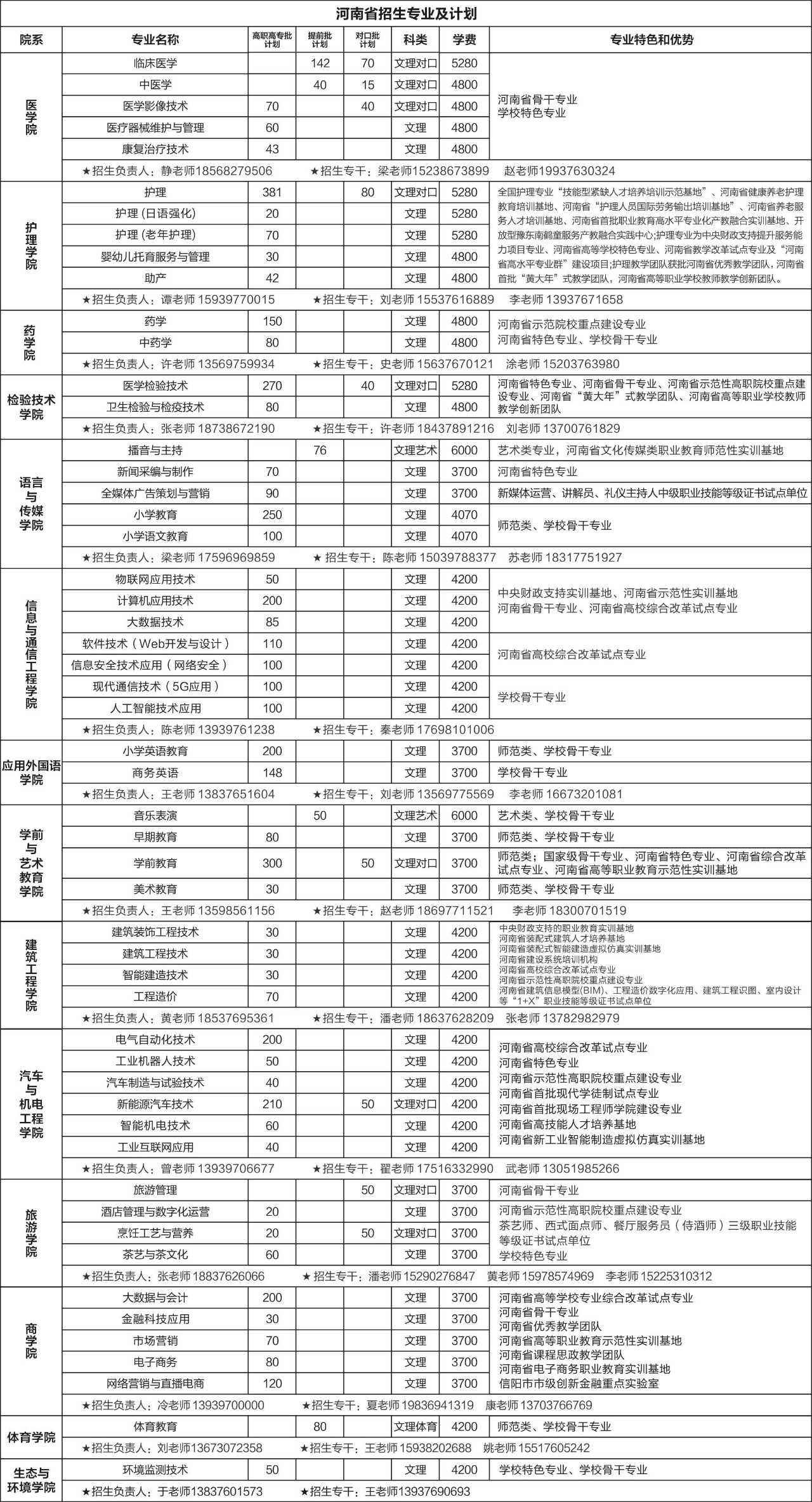 学校拥有“省高等学校特色专业建设点”“省级教改试点专业”“省高等学校专业综合改革试点”20余个。护理和学前教育专业获评教育部创新发展行动计划国家骨干专业,医学检验技术、临床医学、计算机应用技术、大数据会计、旅游管理专业获评省级骨干专业。