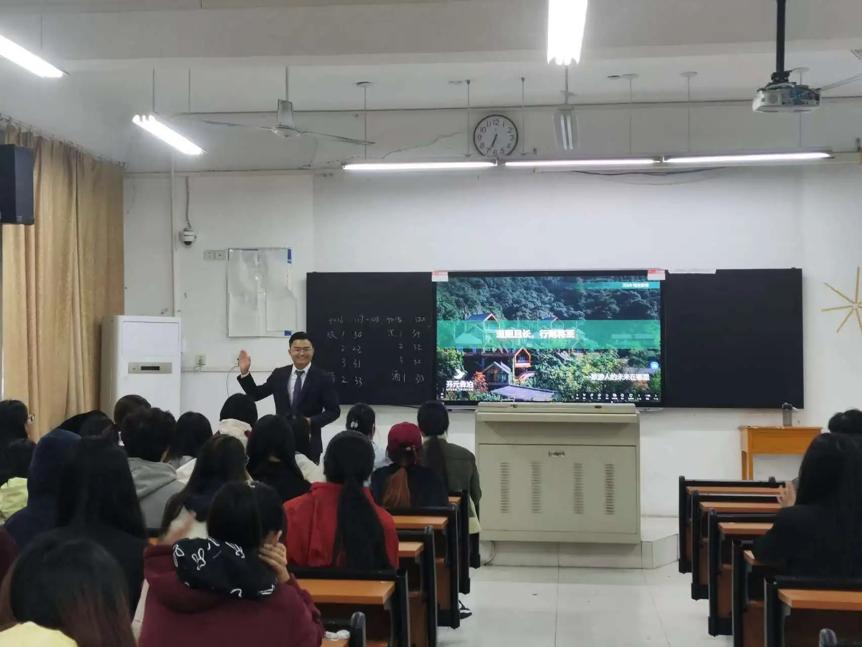 随后,老乡鸡餐饮有限公司、杭州开元森泊旅游投资有限公司、萧山商业资产有限公司等4家企业招聘经理来到40154016教室,面向2025届、2026届毕业生开展专场实习就业宣讲,与同学们进行更深入的面对面交流。