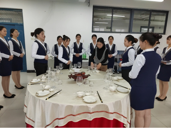 tyc7111cc太阳成集团有酒店实训室实操技能考核实训室1个:80m2,40个工位;茶艺实训室,80m2,40个工位。有餐厅服务教学套组6套、餐桌5个,博古架30组、保温随手泡30个、全自动上水器1个、酒柜1个。