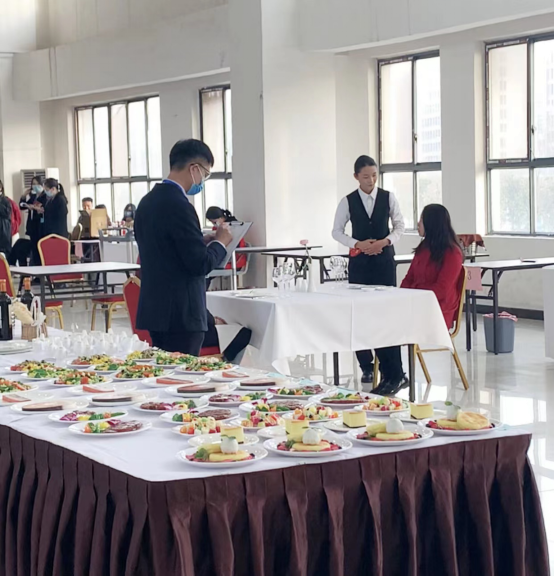 通过过程化考核方式取证。酒店管理与数字化运营专业在第二学期开设营养与健康课程,在第三学期开设餐饮服务与管理课程,酒店市场营销课程,在第四学期开设宴会主题设计课程、酒水基础知识、酒店公共关系等课程,将国家标准融入各阶段性教学过程中,将《餐厅服务员国家职业技能标准》融入《餐饮服务与管理》、《宴会主题设计》、《酒水知识》等课程的知识与技能授课中,并从自建题库选取试题组织3-5次的理论考试、10-15次的实操考试,完成阶段性考核。阶段性考核成绩与辅导员对学生的素质能力评价成绩构成过程化考核总成绩。过程化考核及格,即可在毕业时颁发餐厅服务员职业技能等级证书。