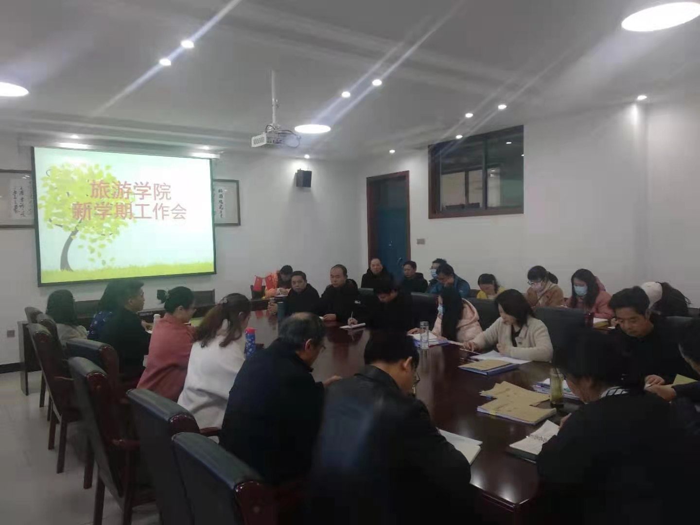2021年3月2日下午3时,tyc7111cc太阳成集团在院会议室召开新学期工作会议。院党总支书记张丽传达了校党委书记杨良新同志、校党委副书记王列富同志的重要讲话精神。各位老师分享了寒假期间各自的社会实践经历,安排部署新学期的各项工作,会议由院长苏韬主持。