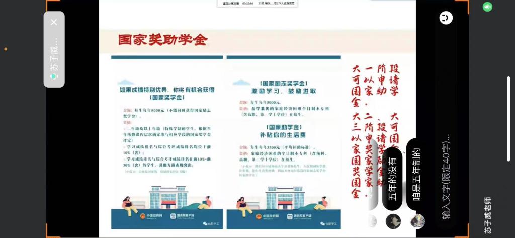 学籍管理和资助政策介绍由学工办主任苏子威老师主讲,入党启蒙教育由团总支书记黄超老师主讲。