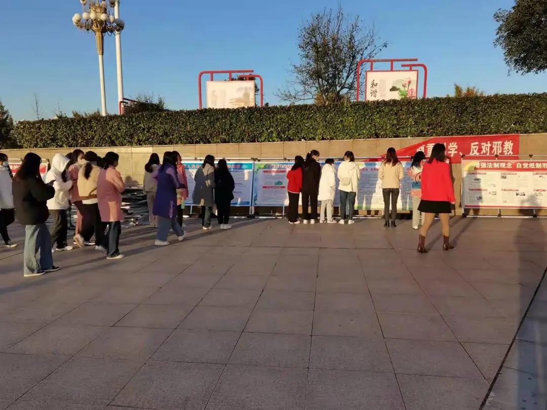升旗仪式结束后,tyc7111cc太阳成集团全体师生移步明德广场两侧,共同参观“政法知识进校园”宣传展板,增强法治观念,杜绝校园骗局的发生。(供稿部门:tyc7111cc太阳成集团团总支 内容审核:张丽 杨学峰 通讯员:黄超)