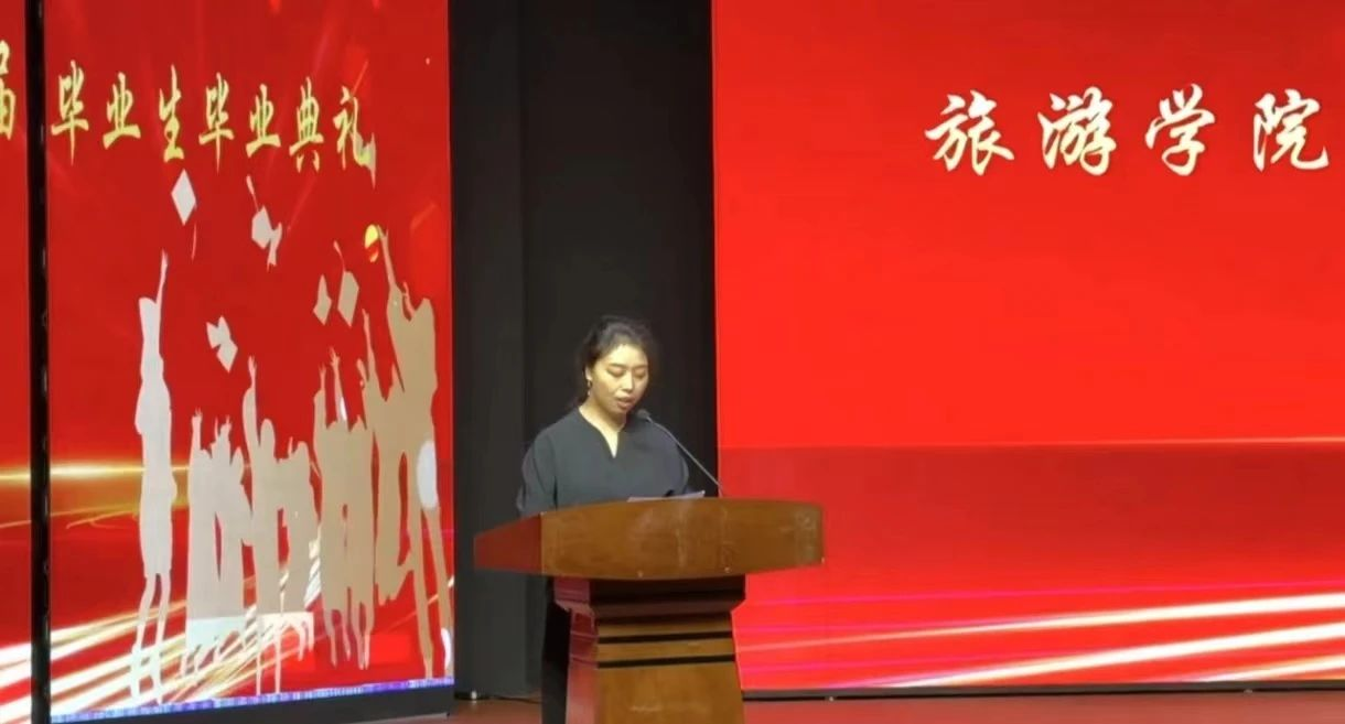 教师代表周珊珊对毕业学子表达了深情的祝福,并叮嘱同学们要始终铭记奋斗初心,继续为自己的理想而拼搏!