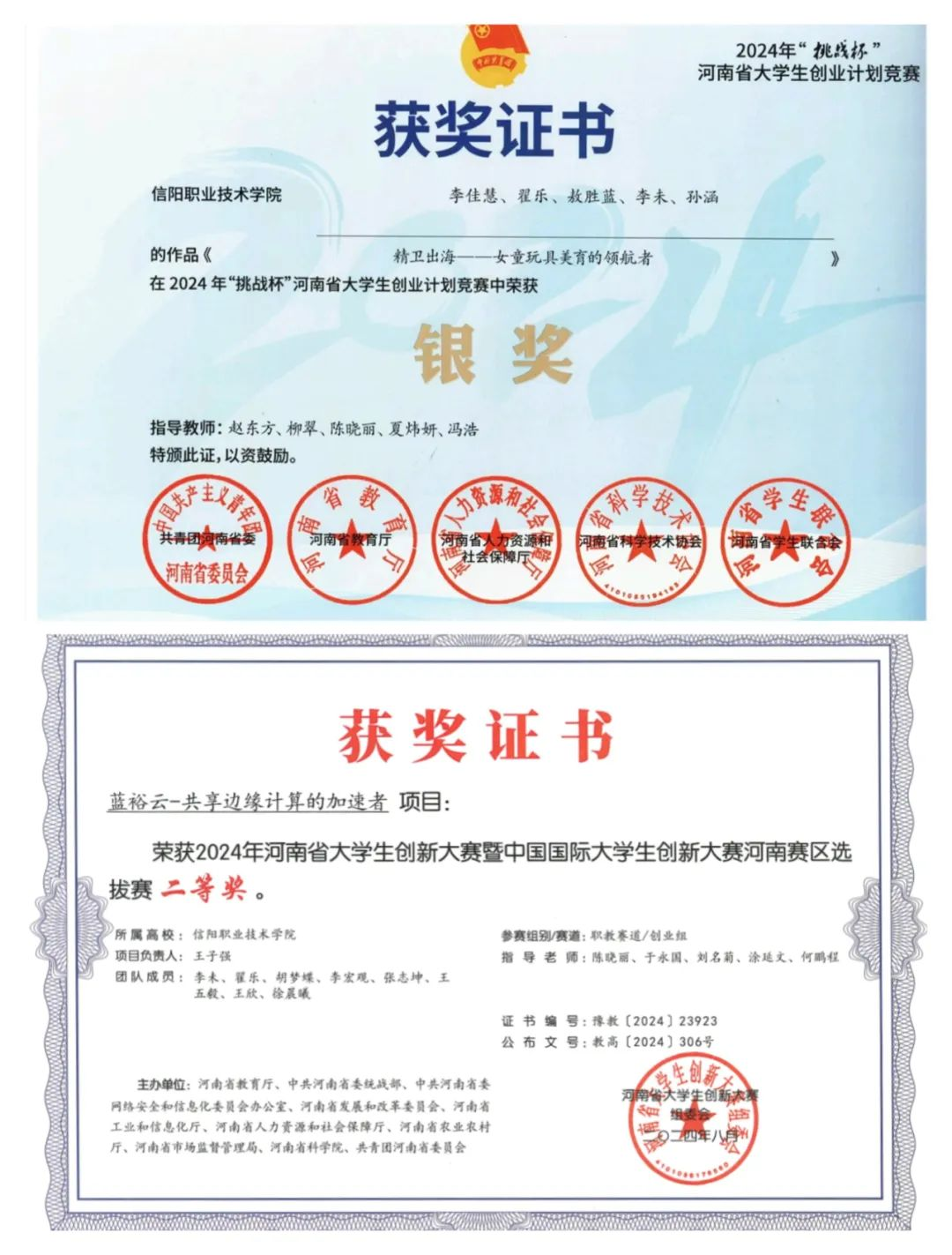 如果说课堂是我成长的沃土,那么创新竞赛就是我展翅翱翔的天空。2024年,我作为核心成员参加河南省大学生创新大赛暨中国国际大学生创新大赛,主要负责计划书的修改,期间修改了二十七稿,最终荣获“二等奖”。紧接着,我又踏上“挑战杯”河南省大学生创业计划竞赛的舞台,在决赛答辩现场,作为路演人,我从容展示,详实分析,最终为团队捧回银奖。竞赛经历不仅锤炼了我的专业技能,还让我领悟到团队协作的力量。