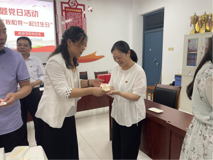 庆诞辰,感党恩。学院党总支为18名党员同志集体过政治生日,老党员代表为各位同志送上生日纪念品及庆生蛋糕。虽然党龄有长有短,但是对党的赤诚之心却始终如一。