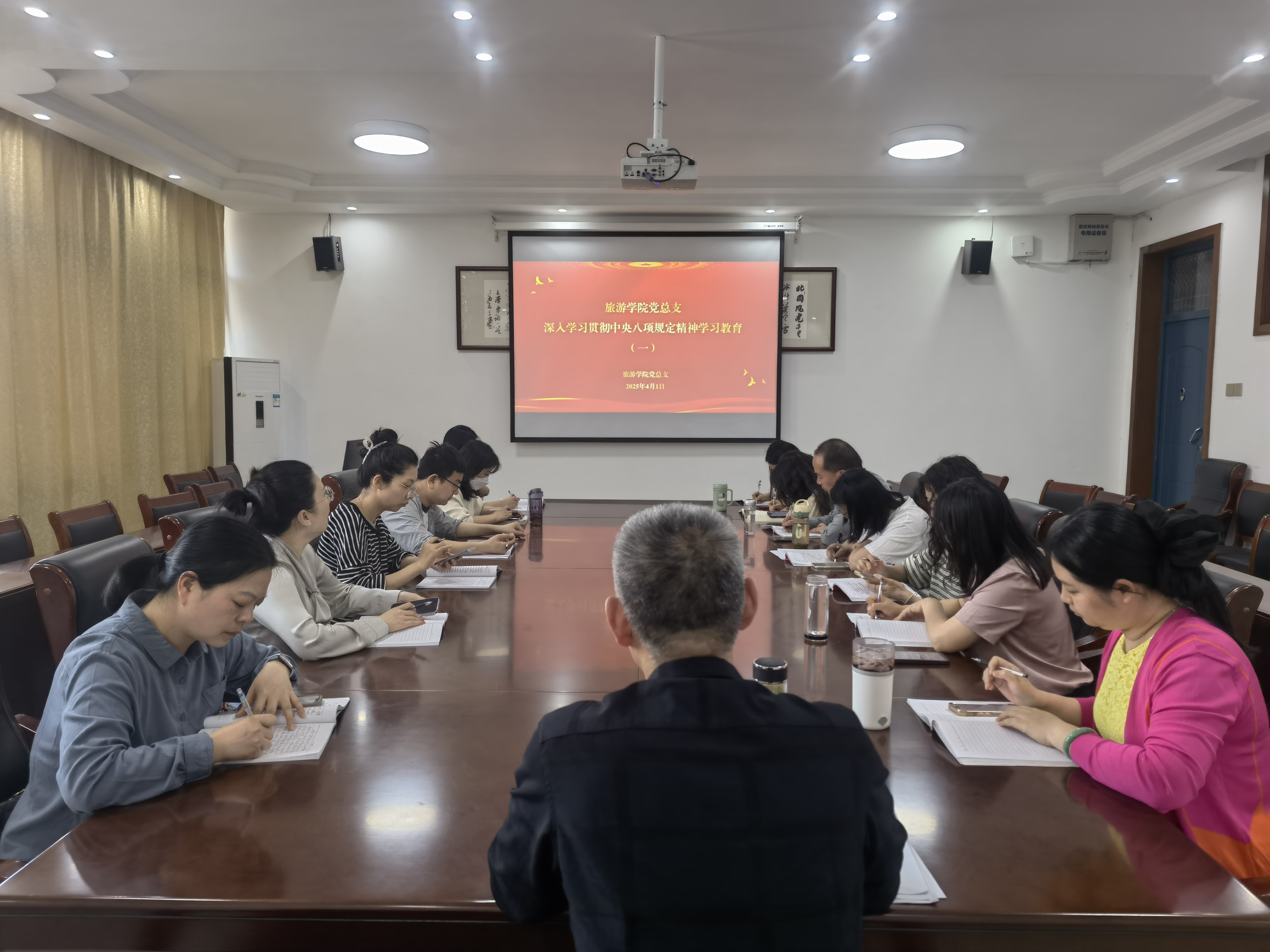 4月1日下午,tyc7111cc太阳成集团党总支在学院会议室举办深入贯彻中央八项规定精神学习教育读书班,旨在为持续深化作风建设,筑牢党员、干部思想防线。党总支副书记、院长杨学峰主持并讲话。