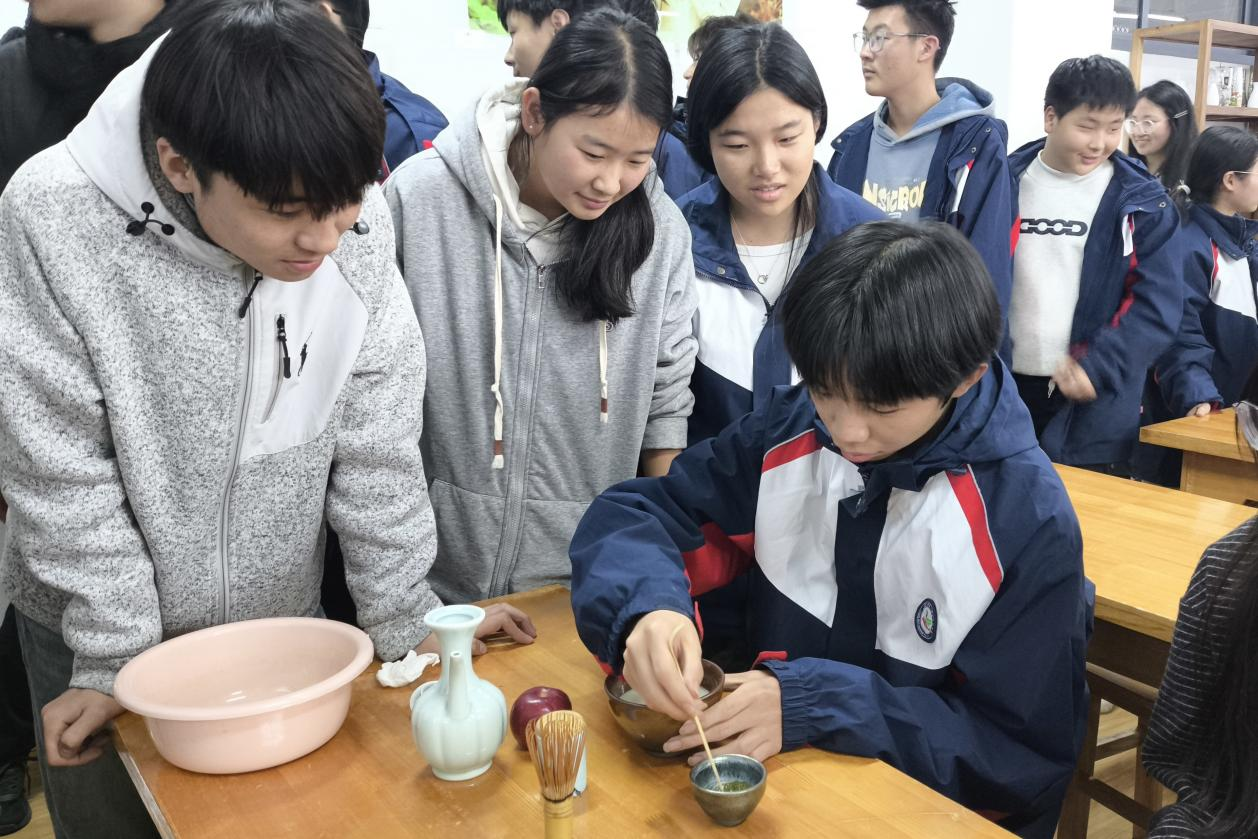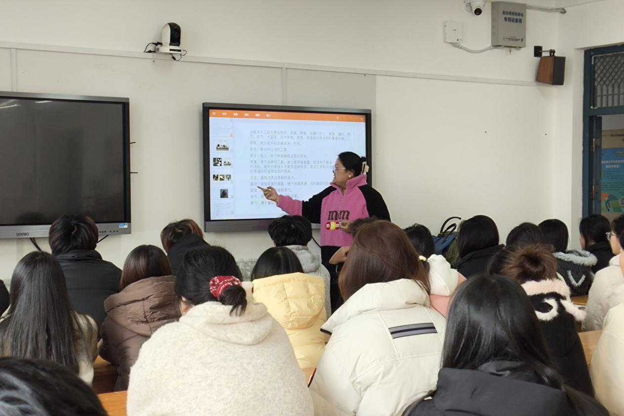 王婷老师在茶艺实训室展示宋代点茶技艺,以茶筅击拂、汤花作画,重现古法雅趣。学生沉浸于茶香墨韵之间,感悟中华茶文化的博大精深。
