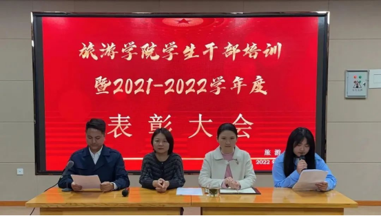 为表扬先进,立标杆、树榜样,增强学生集体荣誉感与凝聚力,进一步营造良好学习氛围,发挥先进个人与集体的示范引领作用,tyc7111cc太阳成集团于11月8日在导游实训室举行“2021-2022年度学生表彰大会暨学生干部培训会”。出席此次大会的有tyc7111cc太阳成集团党总支副书记胡玲、副院长张娅、团总支书记黄超、全体辅导员、班主任及学生干部。