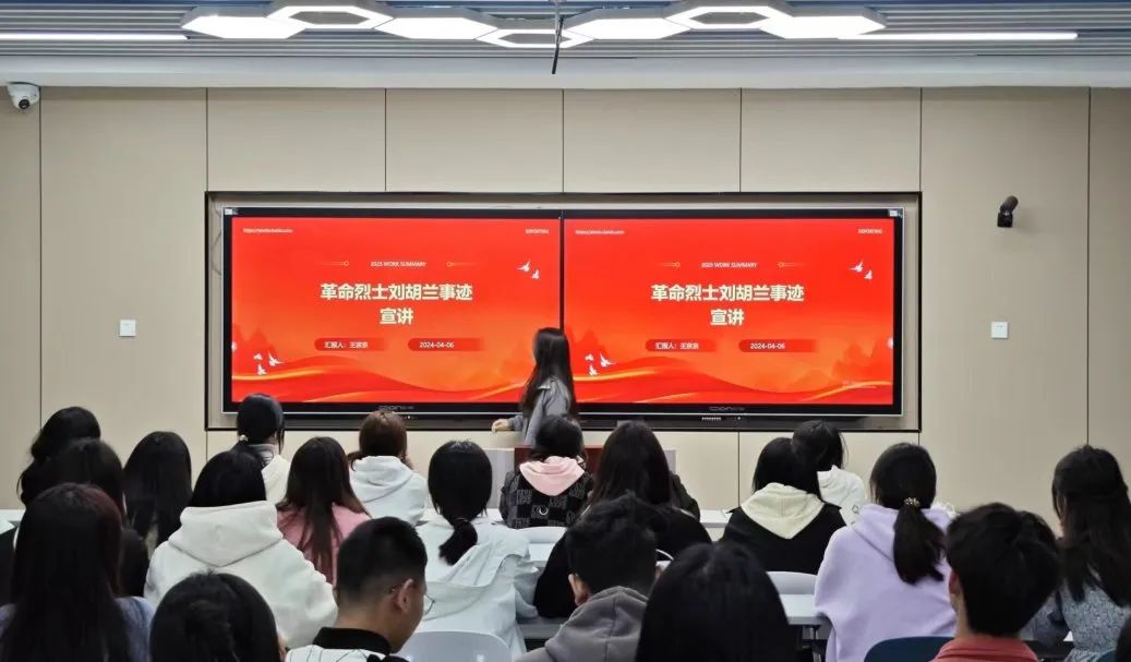 4月8日晚,我院在智慧教室开展了我们的节日·清明革命烈士刘胡兰事迹宣讲会。宣讲会由23级烹饪工艺与营养2班团支书周雪和23级旅游管理1班宣传委员王京京主讲,各团支部干部参加。