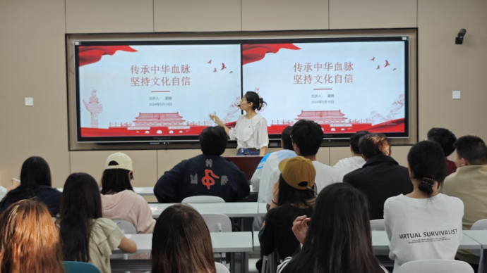 第五课由翟娟老师讲授,翟老师从文化自信是自信之魂、有充分的理由文化自信、文化自信的价值引领三个部分引导青年学生们坚定文化自信,在与不同文化交流中,展现对中华文化的自豪和自信。
