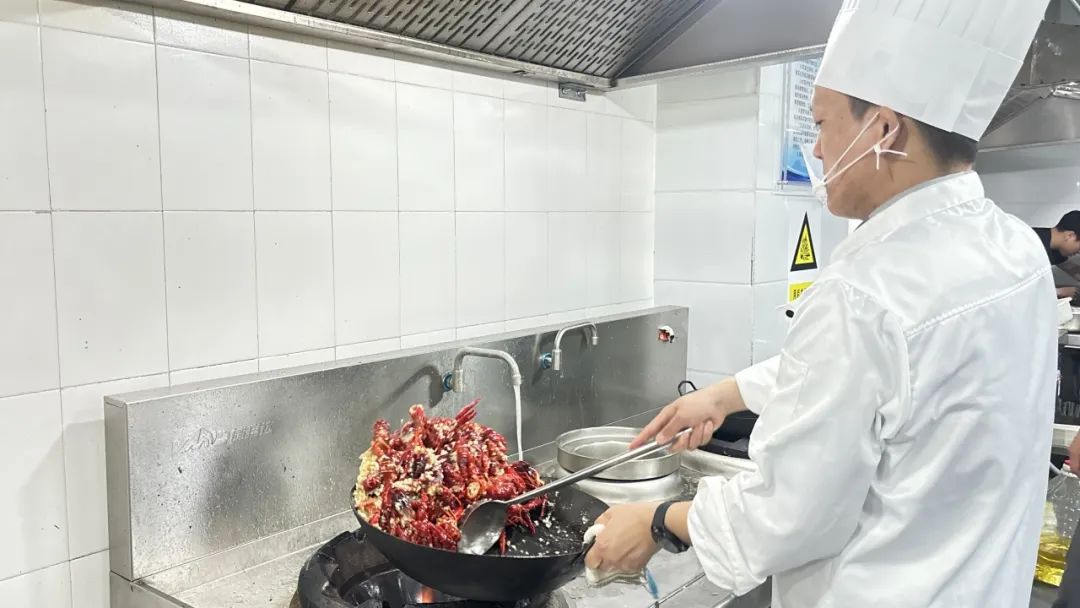 小龙虾同样过油至半熟,剁好的蒜末用热油炒香,再和小龙虾翻炒均匀。