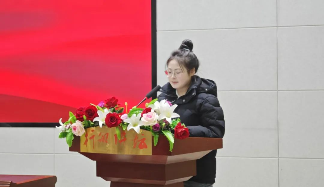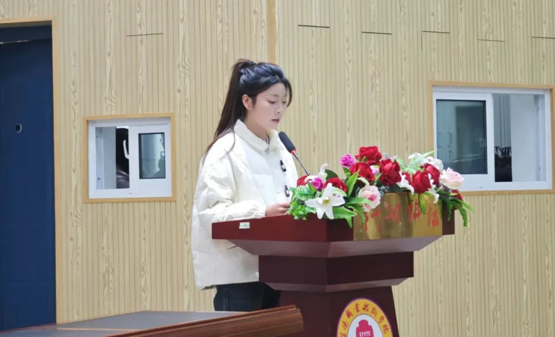 23级烹饪工艺与营养1班周雪同学作为国家励志奖学金获得者代表发言,她回顾了自己入校以来的学习生活情况,以自己的经历号召同学们坚定理想信念,心怀感恩,砥砺前行,以实际行动回报国家和学校的关怀与帮助。