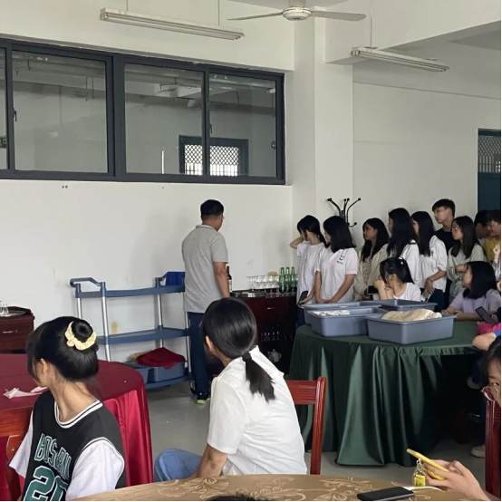 参观分专业分批进行,新生们在实训中心老师们的带领下,有序参观了综合实训室、电子商务实训室、酒店实训室、形体房、3D导游实训室、茶艺实训室、烹饪实训室、仿真实训室。